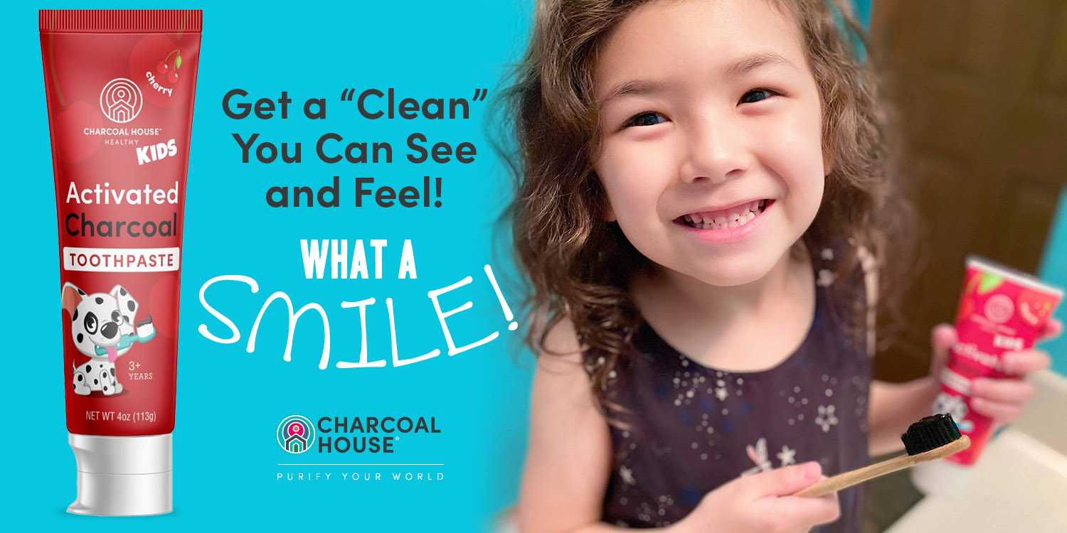 Get a clean you can see and feel with Charcoal House® Children's Natural Cherry flavor toothpaste. Our formula is fluoride-free and less abrasive than baking soda making it safe for most dental work. Our formula whitens and brightens teeth naturally and freshens breath on contact. With regular use, it gently removes stains and helps to polish teeth between cleanings. Simply apply a generous amount to your toothbrush and brush for 2 minutes, rinse until water runs clear and Smile On!