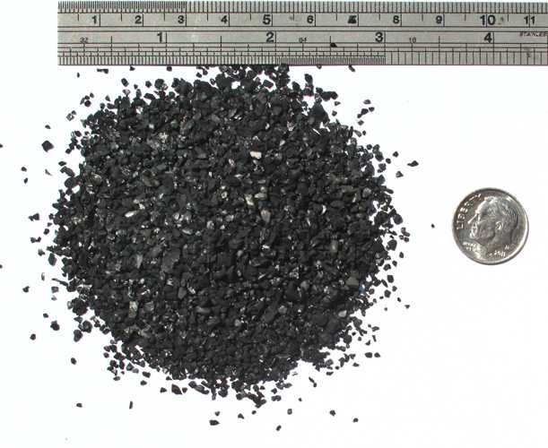 Granular Activated Charcoal (GAC) 8x16 Mesh made from coconut shell. This hard highly adsoptive charcoal is used in a wide variety of air & water filters in numerous applications.