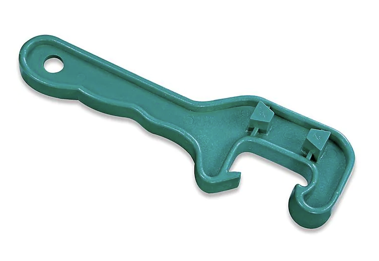 An accessory to pry lids off plastic pails and buckets with no cutting.